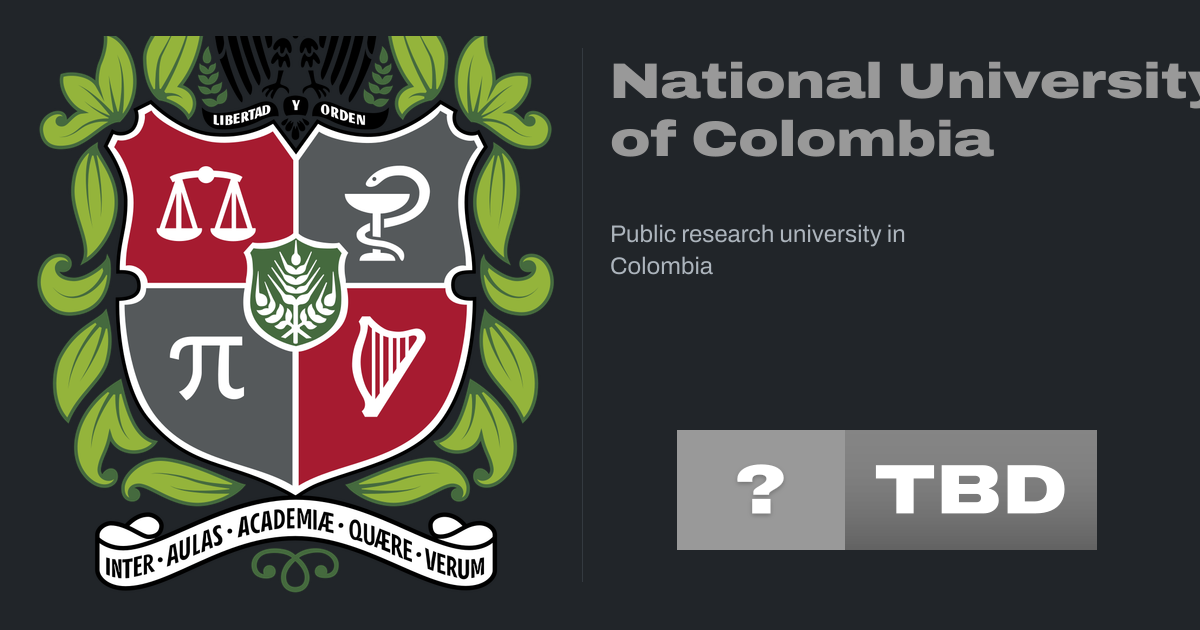 The National University of Colombia (Spanish: Universidad Nacional de Colombia) is a national public research university in Colombia, with general campuses in Bogotá, Medellín, Manizales and Palmira, and satellite campuses in Leticia, San Andrés, Arauca, Tumaco, and La Paz, Cesar.