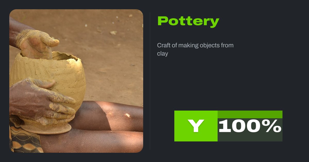 Pottery is the process and the products of forming vessels and other objects with clay and other raw materials, which are fired at high temperatures to give them a hard and durable form. The place where such wares are made by a potter is also called a pottery (plural potteries). The definition of pottery, used by the ASTM International, is "all...