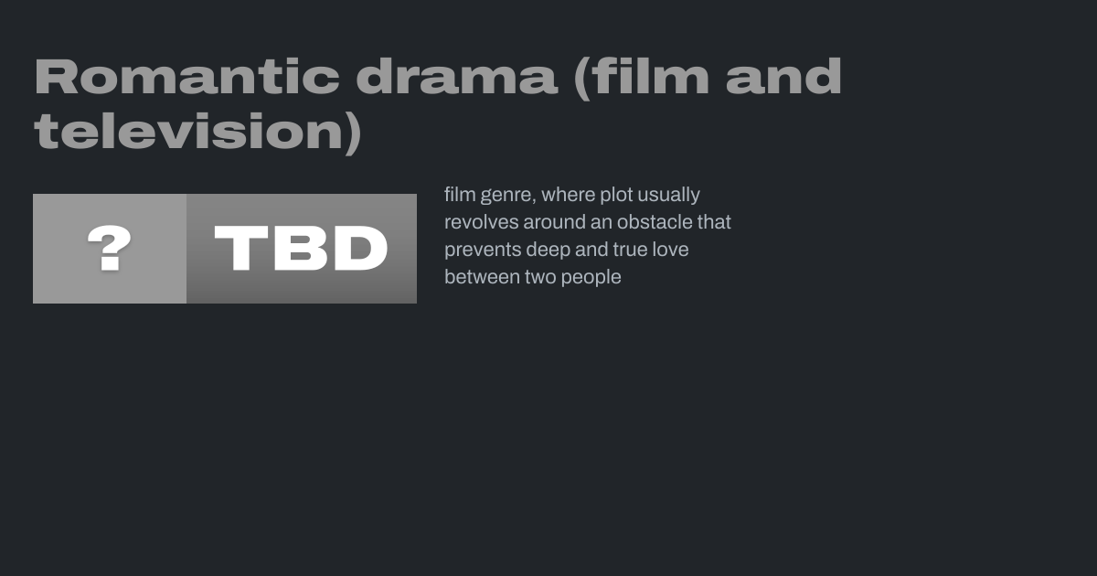 film genre, where plot usually revolves around an obstacle that prevents deep and true love between two people