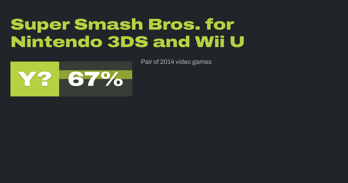 Super Smash Bros. for Nintendo 3DS and Super Smash Bros. for Wii U, both commonly referred together as Super Smash Bros. 4, are 2014 crossover platform fighter video games developed by Bandai Namco Studios and Sora Ltd. and published by Nintendo for the Nintendo 3DS and Wii U video game consoles. It is the fourth installment in the Super Smash...