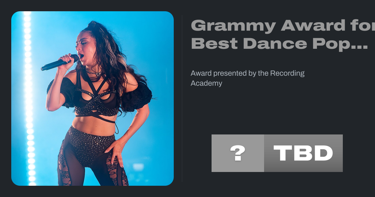 The Grammy Award for Best Dance Pop Recording is an award presented by the Recording Academy to honor quality dance pop music performances in any given year. The award was presented for the first time at the 66th Annual Grammy Awards in 2024, as a complement to the Grammy Award for Best Dance/Electronic Recording and the first new category...
