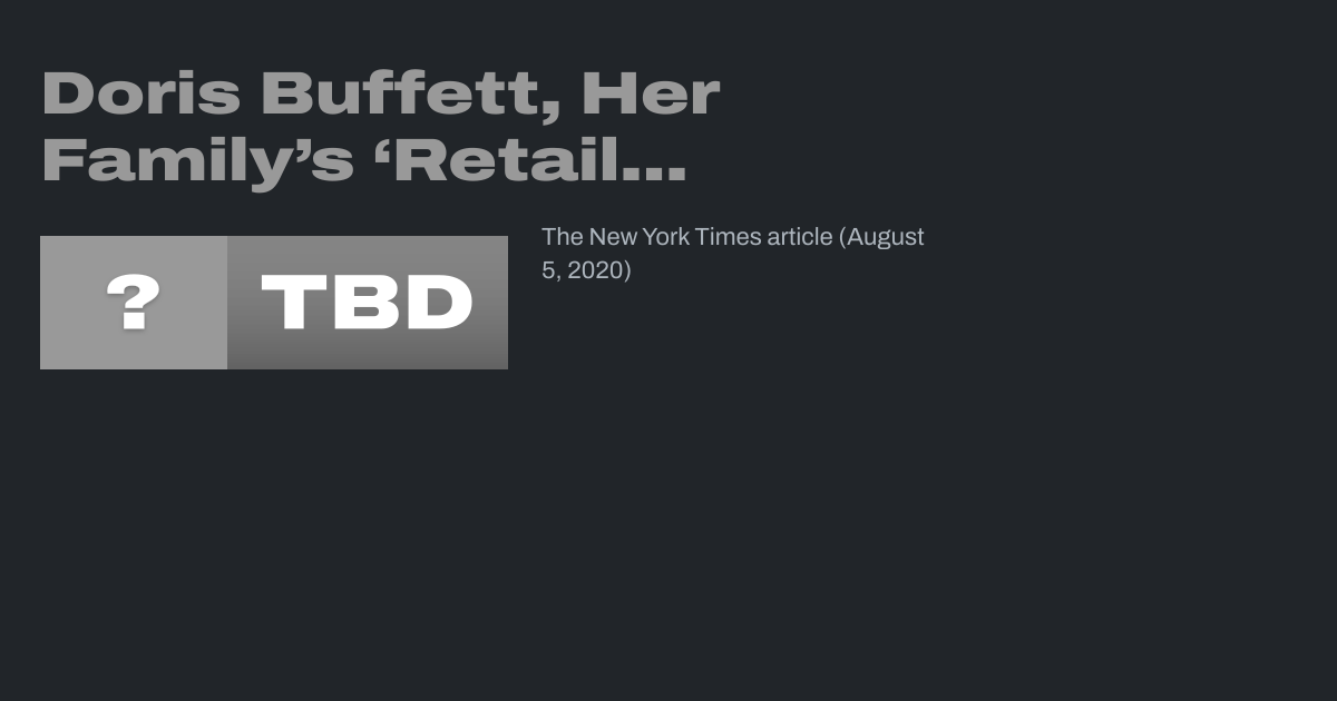 Doris Buffett, Her Family’s ‘Retail Philanthropist,’ Dies at 92