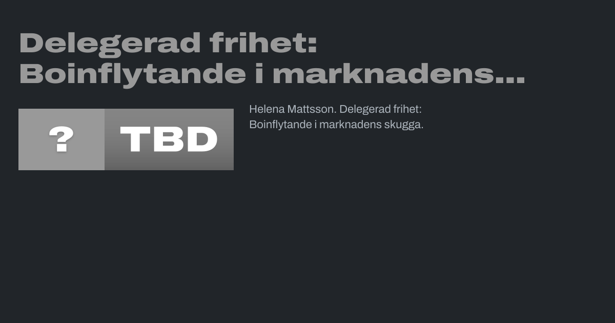 Helena Mattsson. Delegerad frihet: Boinflytande i marknadens skugga.