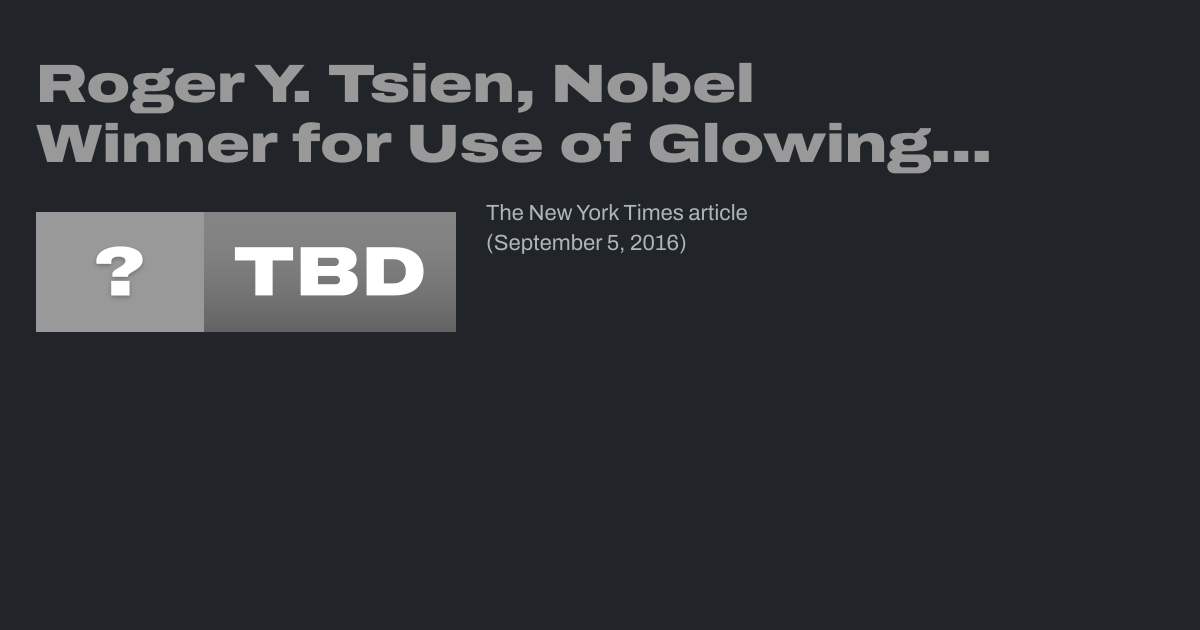 Roger Y. Tsien, Nobel Winner for Use of Glowing Proteins, Dies at 64
