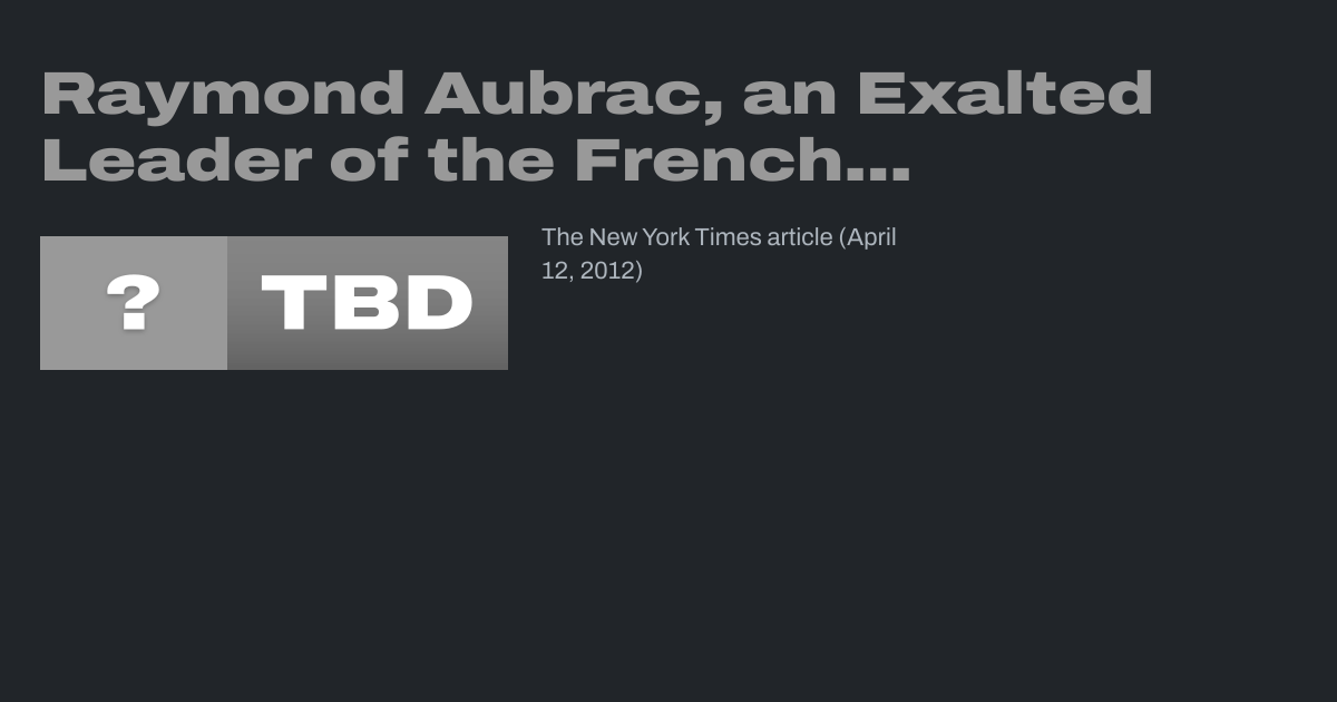 Raymond Aubrac, an Exalted Leader of the French Resistance, Dies at 97