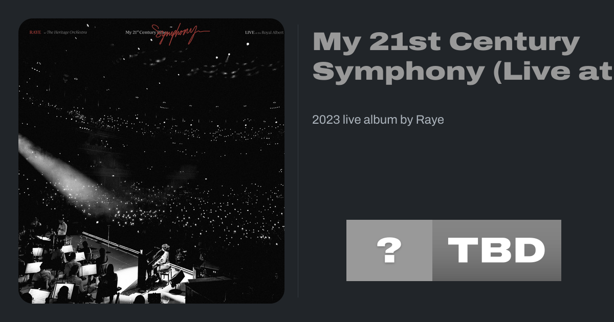 My 21st Century Symphony (Live at the Royal Albert Hall) is the first live album by English singer-songwriter Raye, recorded on 26 September 2023 at the Royal Albert Hall in London. The album spent two weeks on the UK Albums Chart and peaked at number 83.