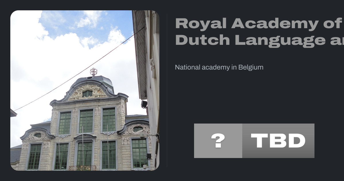 The Royal Flemish Academy for Dutch Language and Literature (Dutch: Koninklijke Academie voor Nederlandse Taal en Letteren, pronounced [ˈkoːnɪŋkləkə ˌaːkaːˈdeːmi voːr ˈneːdərlɑntsə ˈtaːl ɛn ˈlɛtərə(n)], abbr. KANTL) is an institution focused on the study and promotion of the Dutch language in Flanders. It is the Dutch-speaking counterpart of the...