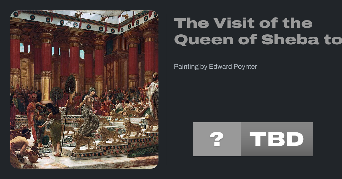 The Visit of the Queen of Sheba to King Solomon is an 1890 history painting by the British artist Edward Poynter. It depicts the biblical scene of the Queen of Sheba at the court of the Israeli King Solomon. The work was widely discussed as being Poynter's masterpiece and praised for its "archaeological accuracy". Today the painting is in the...