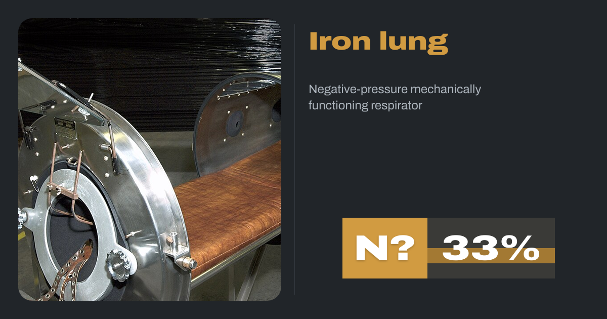 An iron lung is a type of negative pressure ventilator (NPV), a mechanical respirator which encloses most of a person's body and varies the air pressure in the enclosed space to stimulate breathing. It assists breathing when muscle control is lost, or the work of breathing exceeds the person's ability. Need for this treatment may result from...