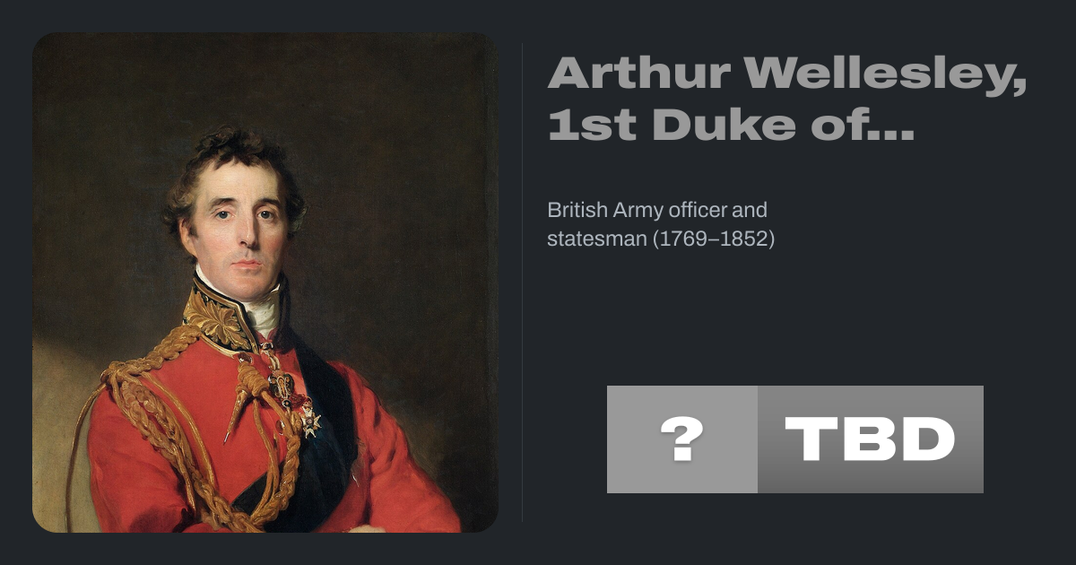 Field Marshal Arthur Wellesley, 1st Duke of Wellington (né Wesley; 1 May 1769 – 14 September 1852) was an Anglo-Irish British Army officer and statesman who was one of the leading military and political figures in Britain during the early 19th century, twice serving as Prime Minister of the United Kingdom. He was one of the British commanders...
