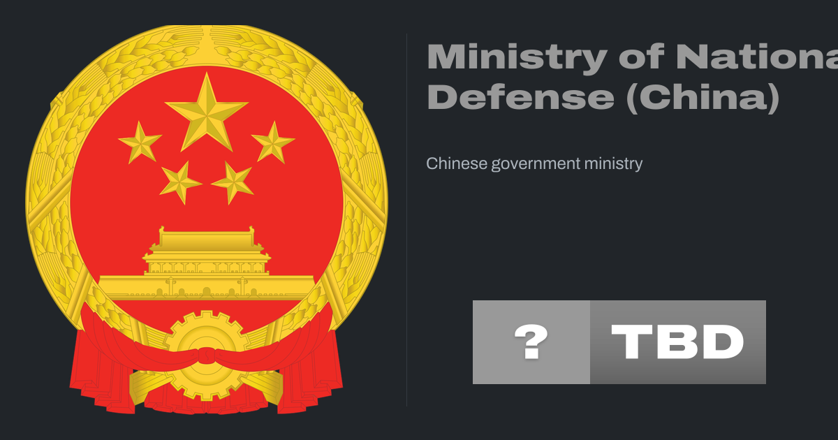 The Ministry of National Defense of the People's Republic of China is the second-ranked constituent department under the State Council. It is headed by the Minister of National Defense.