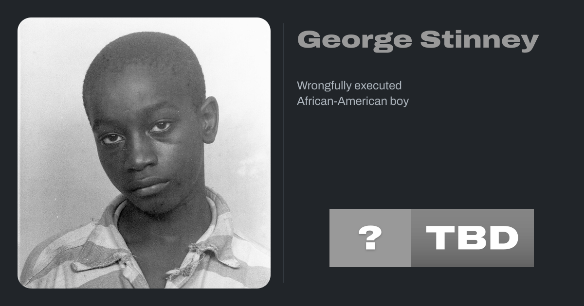 George Junius Stinney Jr. (October 21, 1929 โ June 16, 1944) was an African American boy who was wrongfully executed at the age of 14 after being convicted, during an unfair trial, for the murders of two white girls โ 11-year-old Betty June Binnicker (December 9, 1932 โ March 22, 1944) and 8-year-old Mary Emma Thames (March 14, 1936 โ March 22,...