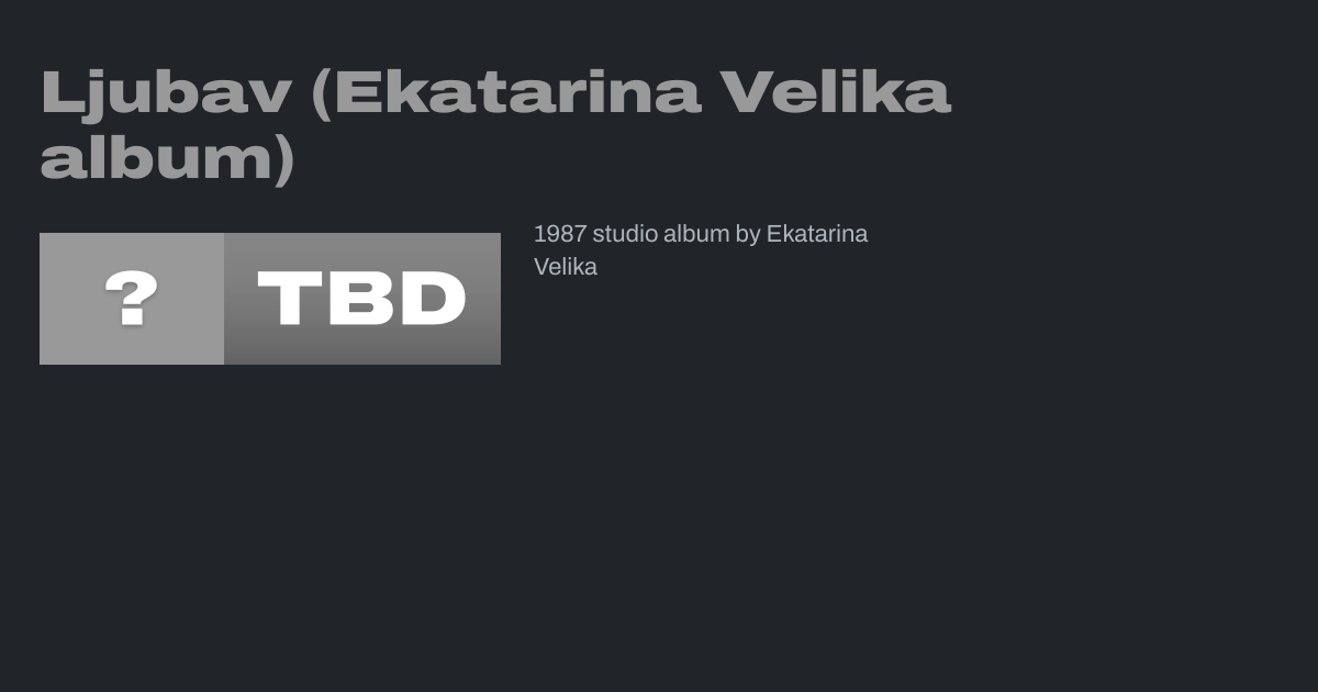 Ljubav (English: Love) is the fourth studio album by the Serbian rock band Ekatarina Velika, released in 1987. The new band member, replacing Ivan "Raka" Ranković on drums, was Srđan "Žika" Todorović (ex Radnička kontrola, Bezobrazno zeleno, Disciplina kičme). It was their first album released for the Serbian label PGP RTB, and also the first...