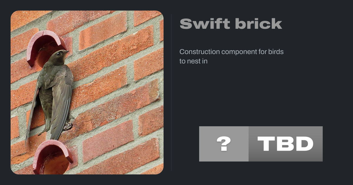 A swift brick is a hollow construction brick containing a cavity that allows swifts to nest within it, functioning in a manner similar to a nest box. It was developed in response to declining swift populations in the United Kingdom, largely attributed to the loss of natural nesting sites.