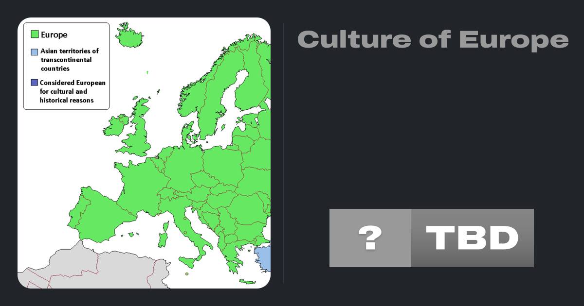 The culture of Europe is diverse, and rooted in its art, architecture, traditions, cuisines, music, folklore, embroidery, film, literature, economics, philosophy and religious customs.