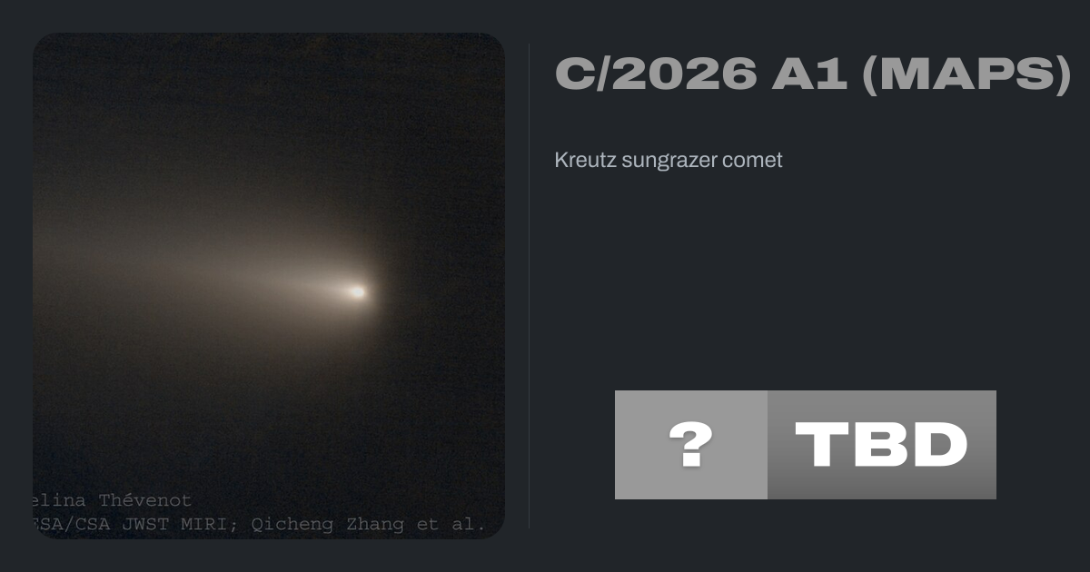 C/2026 A1 (MAPS), formerly known by its temporary designation as 6AC4721, was a Kreutz sungrazer comet discovered on 13 January 2026 from the AMACS1 Observatory in the Atacama Desert. This comet was discovered through the MAPS program, which was led by Alain Maury, Georges Attard, Daniel Parrott and Florian Signoret. On 4 April 2026, it passed...