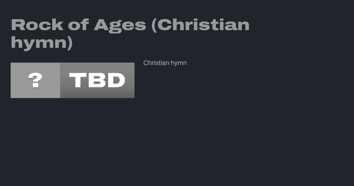 "Rock of Ages" is a popular Christian hymn written by the Reformed Anglican minister Augustus Toplady.