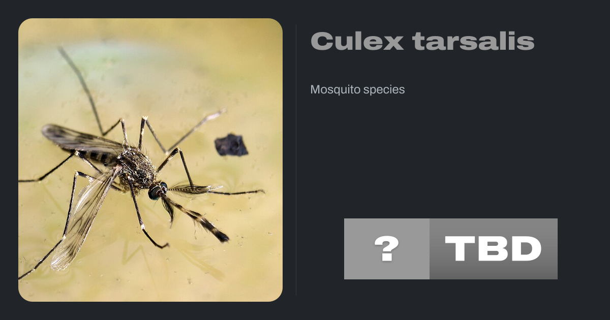 Culex tarsalis, also known as Western Encephalitis Mosquito, is a mosquito species that appears across North America. The species has black and white banding on the legs.
