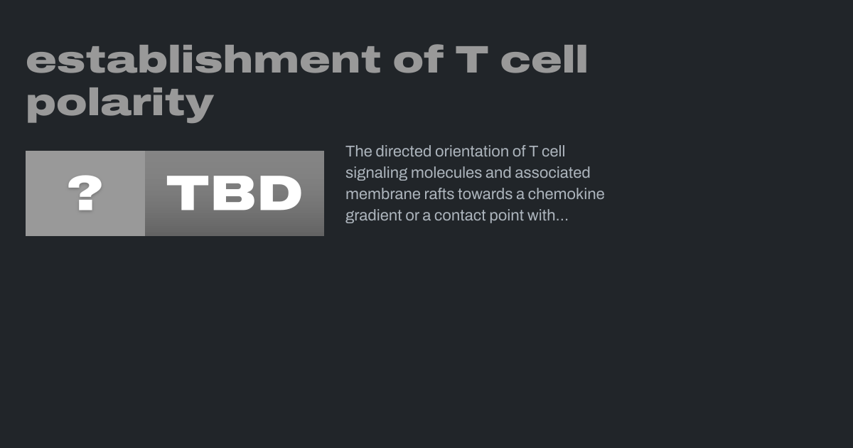 The directed orientation of T cell signaling molecules and associated membrane rafts towards a chemokine gradient or a contact point with antigen presenting cell.