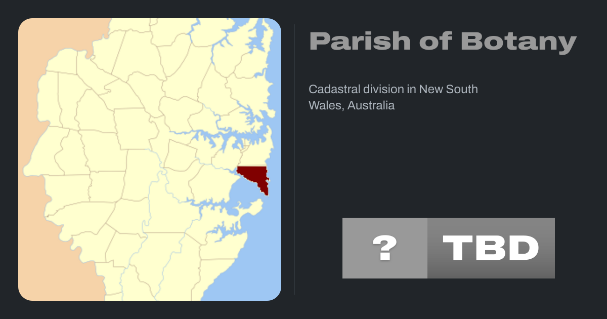 Botany Parish, Cumberland is one of the 57 parishes of Cumberland County, New South Wales, a cadastral unit for use on land titles. It contains the area to the north of Botany Bay and to the east of part of Cooks River. It includes the suburbs of La Perouse, Hillsdale, Banksmeadow and Maroubra. It also includes Sydney Airport.