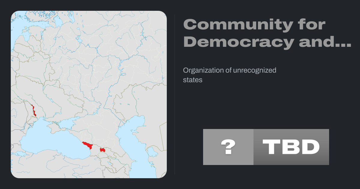 The Community for Democracy and Rights of Nations, also commonly and colloquially known as the Commonwealth of Unrecognized States, rarely as CIS-2, is an international organization in Eastern Europe and the South Caucasus of three breakaway states in the territory of the former Soviet Union, all of which have limited to no recognition from the...