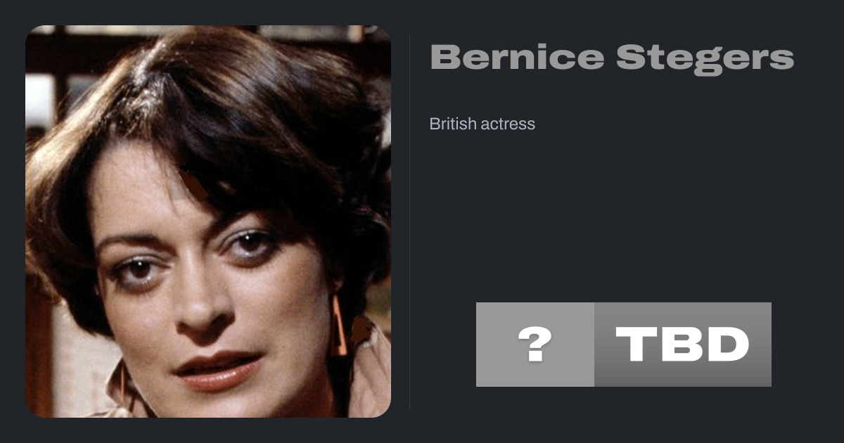 Bernice Mary Stegers (born 12 July 1949) is a British actress. She is known for her roles on television, as well as the horror films Macabre (1980) and Xtro (1982).