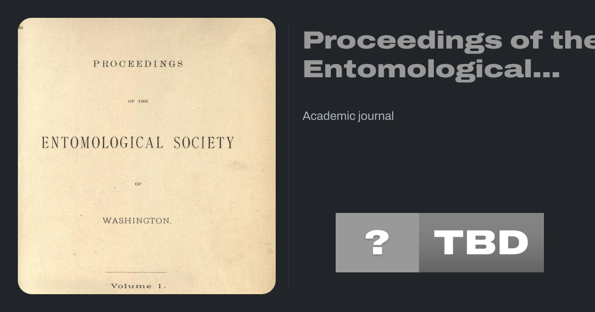 Proceedings of the Entomological Society of Washington is a peer-reviewed scientific journal of entomology published by the Entomological Society of Washington. The journal was established in 1886 and is currently published four times per year. The journal is edited by Mark A. Metz.