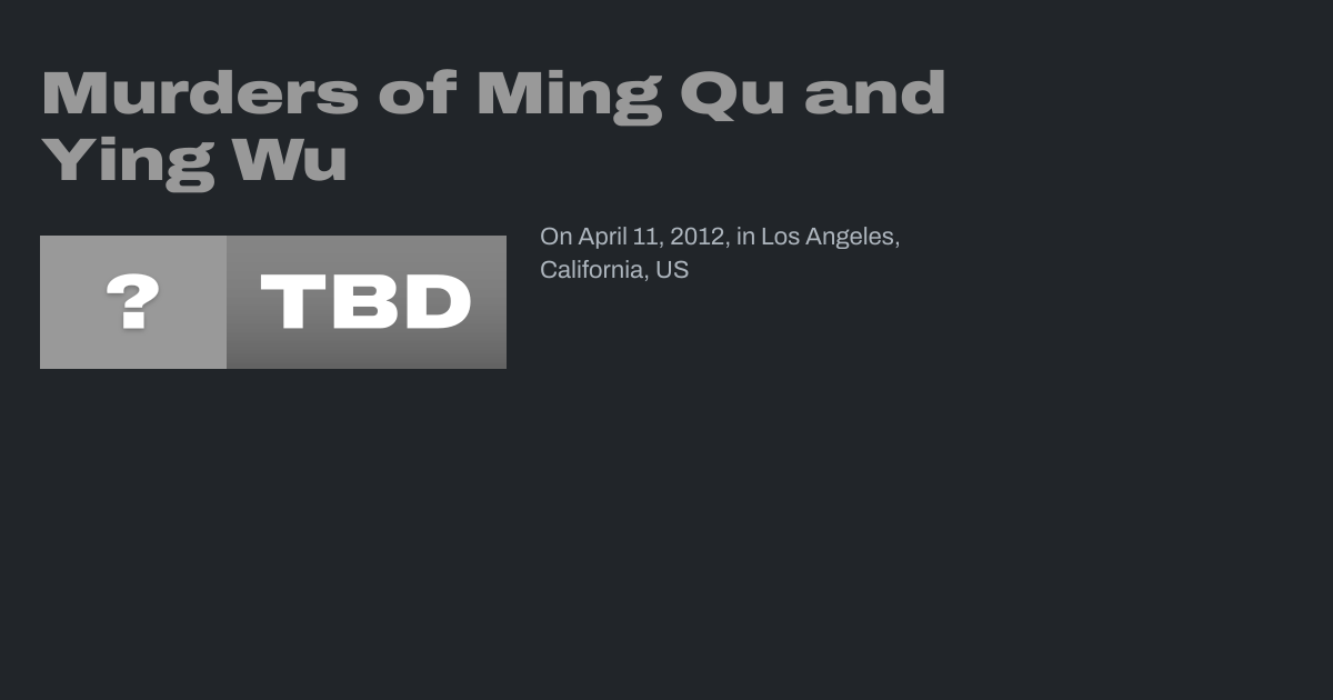 The murders of Ming Qu and Ying Wu occurred on April 11, 2012, when two African-American men shot and murdered two Chinese graduate students from USC who were sitting in their 2003 BMW parked 1 mile (1.6 km) outside of the University of Southern California (USC) campus in Los Angeles, California. It sparked safety concerns around the campus in...