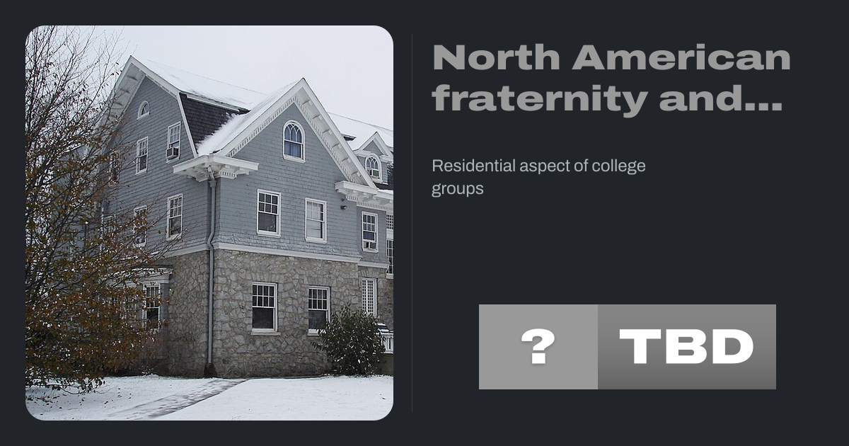 North American fraternity and sorority housing refers largely to the houses or housing areas in which fraternity and sorority members live and work together. In addition to serving as housing, fraternity and sorority housing may also serve to host social gatherings, meetings, and functions that benefit the community.