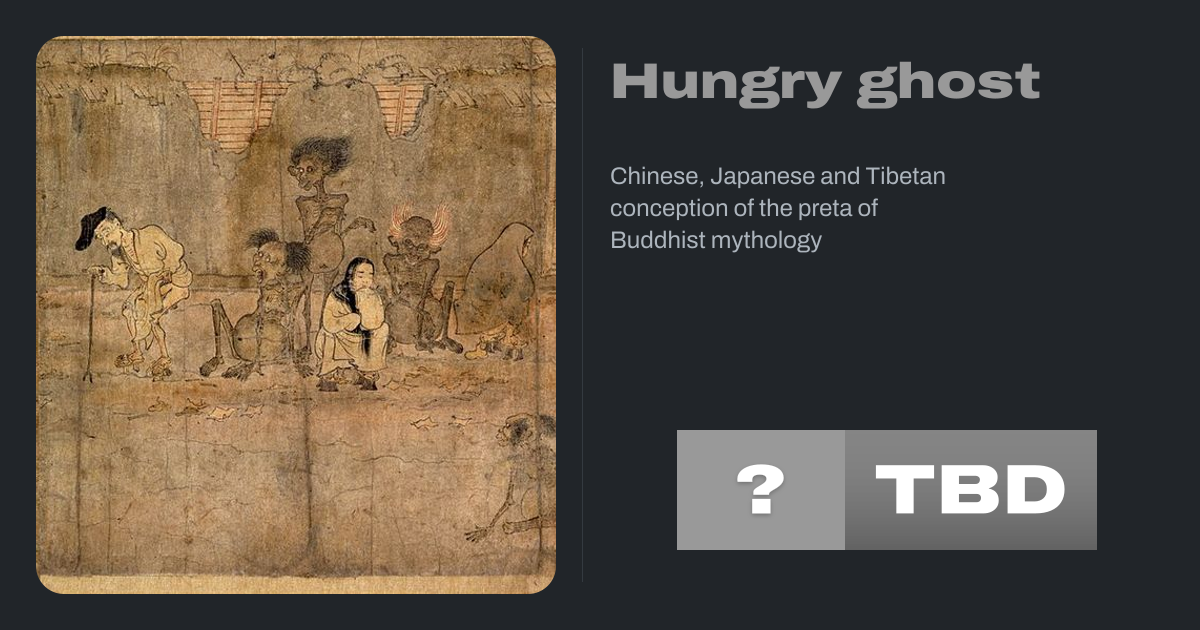 Hungry ghost is a term in Buddhism and Chinese traditional religion, representing beings who are driven by intense emotional needs in an animalistic way.