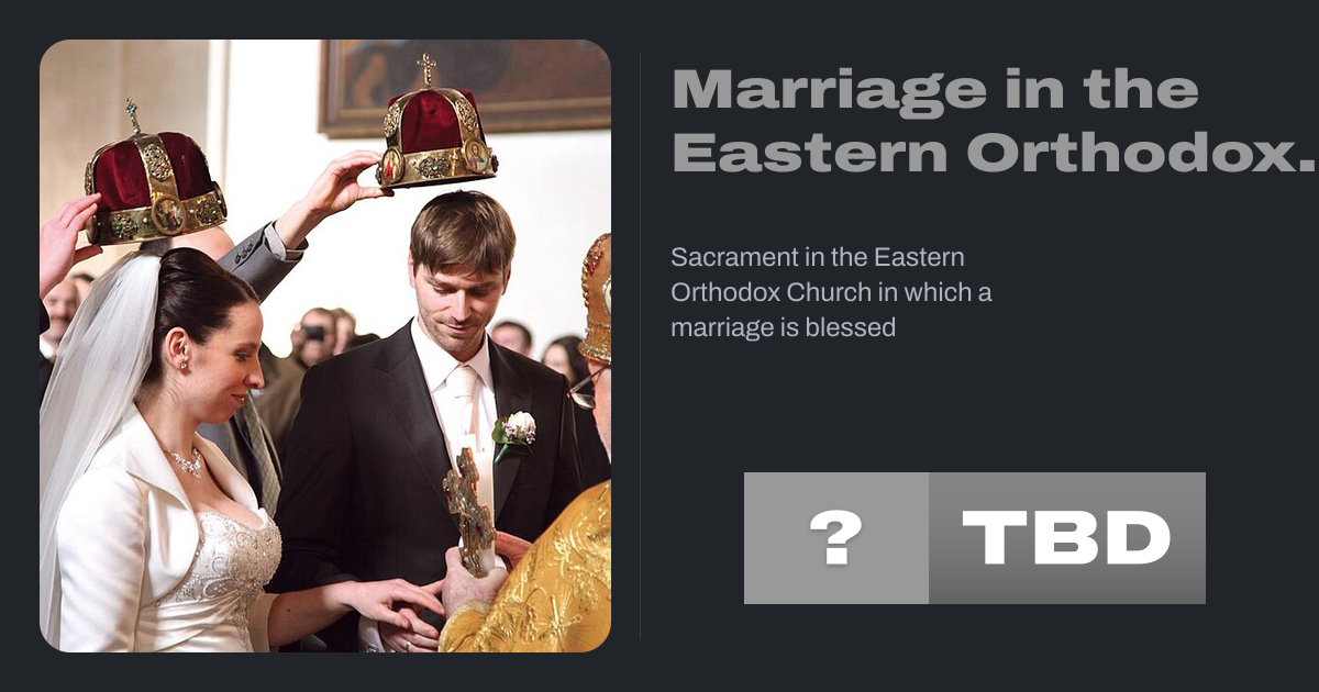 Marriage in the Eastern Orthodox Church is a holy mystery (sacrament) in the Eastern Orthodox Church in which a priest officiates a marriage between a man and a woman. In the Byzantine Rite liturgy for Matrimony, the couple is crowned.