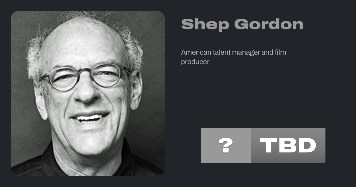 Shep E. Gordon (born October 18, 1945) is an American talent manager, Hollywood film agent, and producer. Gordon is featured in a 2013 documentary, Supermensch: The Legend of Shep Gordon, which was directed by Mike Myers.