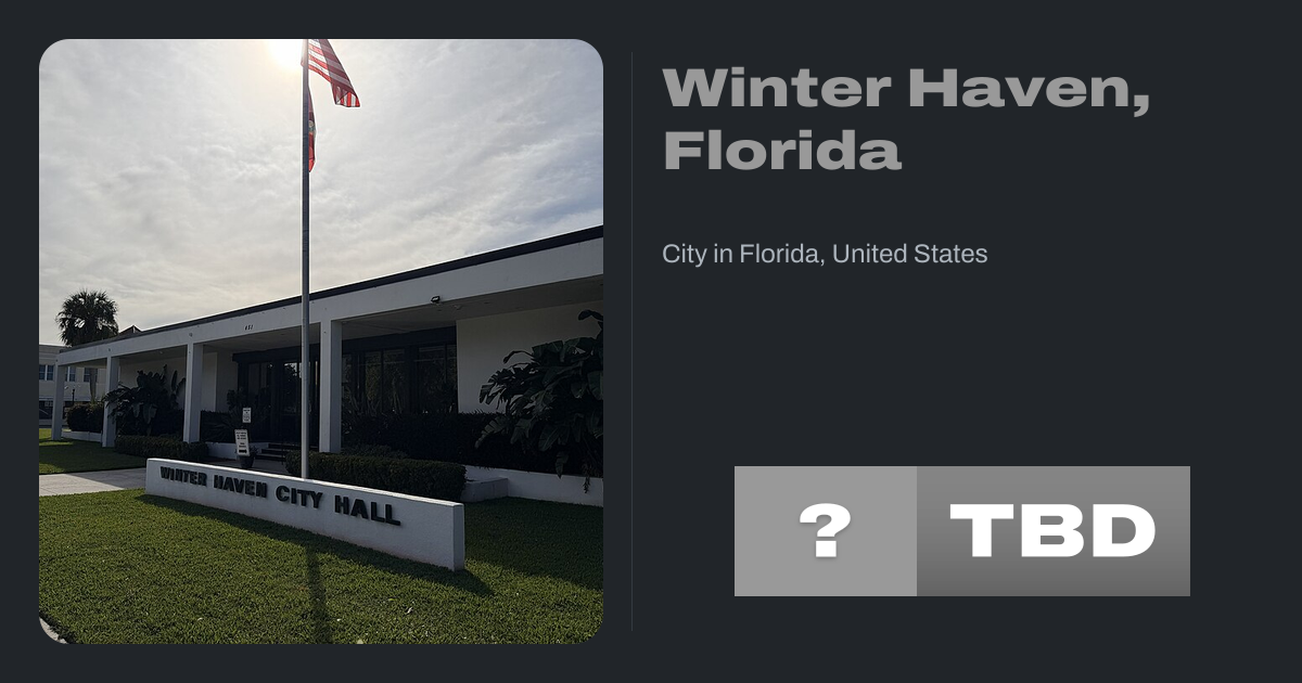 Winter Haven is a city in Polk County, Florida, United States. It is located about 51 miles (82 km) east of Tampa and about 47 miles (76 km) southwest of Orlando, with neighboring Lakeland located to its west. The city's population was 49,219 at the 2020 census, making it the second most populous city in Polk County after Lakeland. It is a...