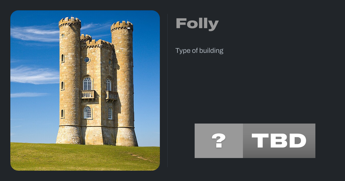In architecture, a folly is a building constructed primarily for decoration, but suggesting through its appearance some other purpose, or of such extravagant appearance that it transcends the range of usual garden buildings.
