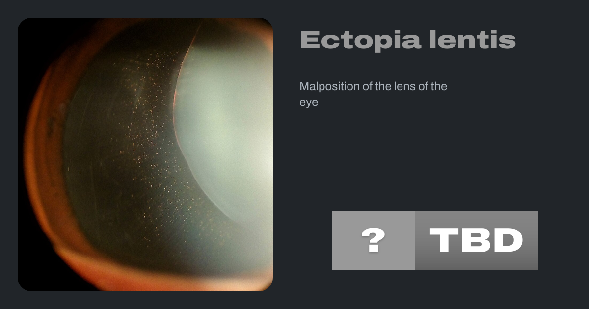 Ectopia lentis is a displacement or malposition of the eye's lens from its normal location. A partial dislocation of a lens is termed lens subluxation or subluxated lens; a complete dislocation of a lens is termed lens luxation or luxated lens.