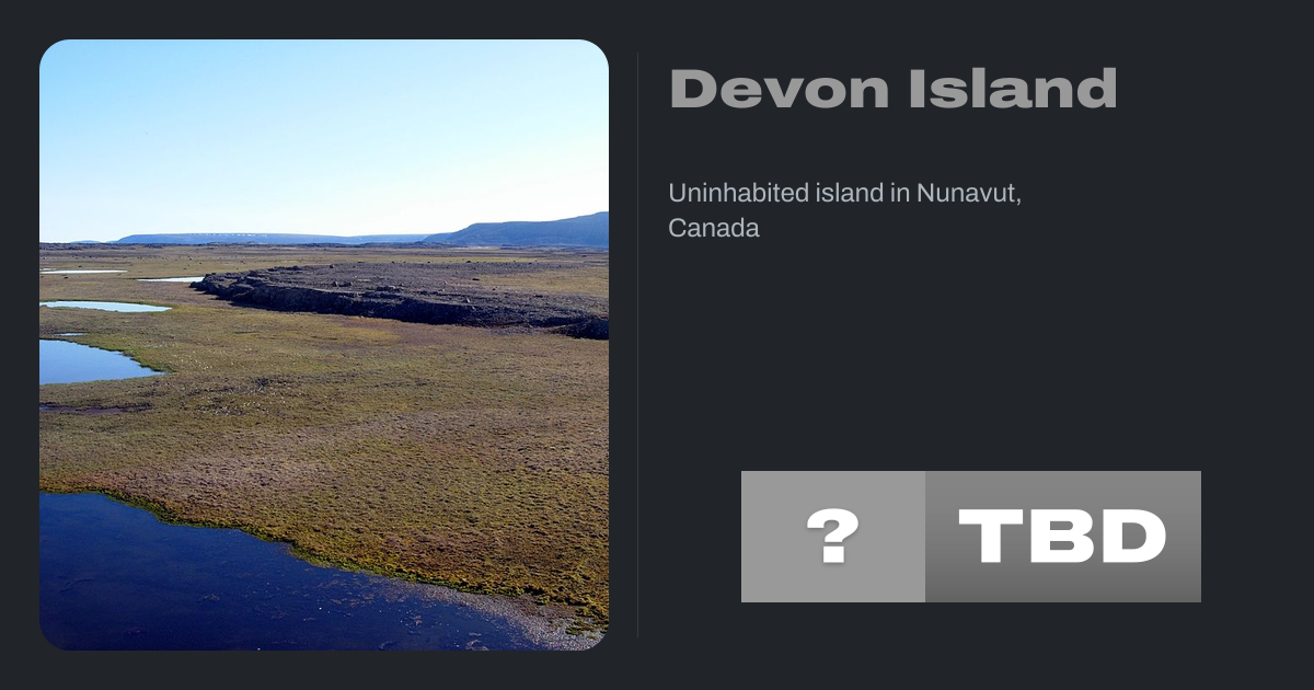 Devon Island (Inuktitut: แแชแแแแฆ, Tallurutit) is an island in Canada and the largest uninhabited island (no permanent human residents) in the world. It is located in Baffin Bay, Qikiqtaaluk Region, Nunavut, Canada. It is one of the largest members of the Arctic Archipelago, the second-largest of the Queen Elizabeth Islands, Canada's sixth-largest...
