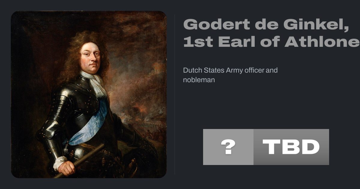 Godard van Reede, 1st Earl of Athlone (14 June 1644 – 11 February 1703) was a Dutch States Army officer and nobleman who rose to prominence during the Williamite War in Ireland. During the Franco-Dutch War, his bravery and meticulous execution of duties as a cavalry officer caught William of Orange's attention. Rapid promotions followed, and in...