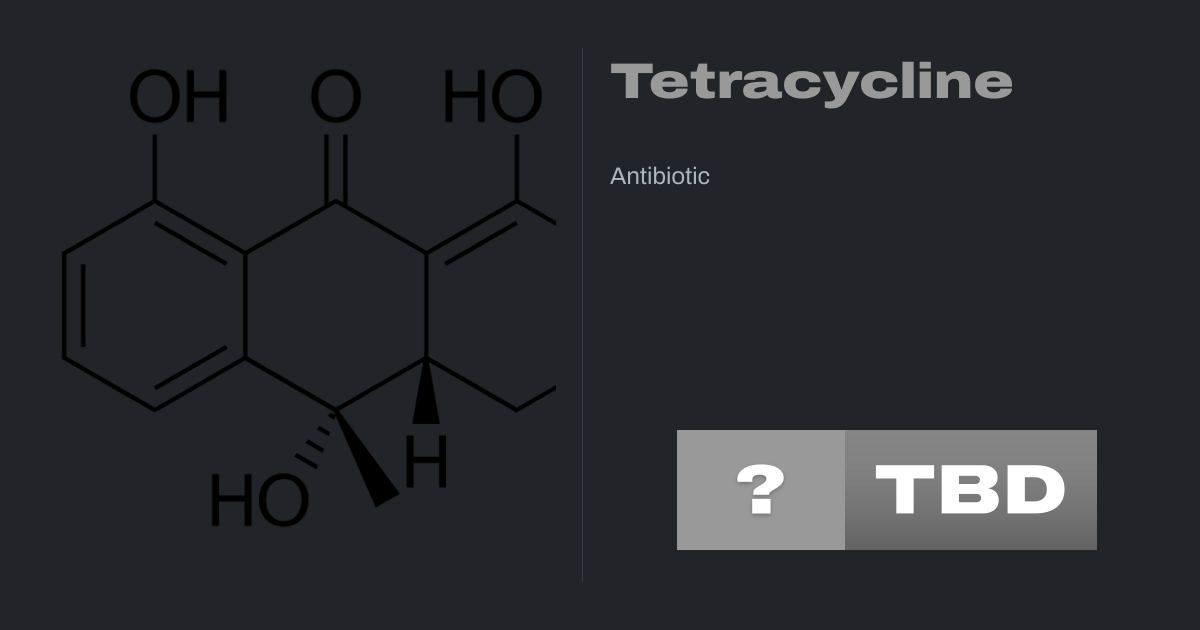 Tetracycline, sold under various brand names, is an antibiotic in the tetracyclines family of medications, used to treat a number of infections, including acne, cholera, brucellosis, plague, malaria, and syphilis. It is available in oral and topical formulations.
