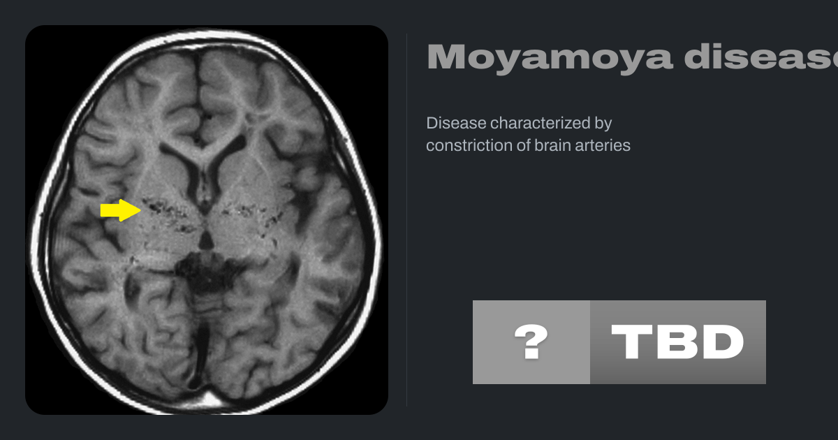 Moyamoya disease is a disease in which certain arteries in the brain are constricted. Blood flow is blocked by constriction and blood clots (thrombosis). A collateral circulation develops around the blocked vessels to compensate for the blockage, but the collateral vessels are small, weak, and prone to bleeding, aneurysm, and thrombosis. On a...
