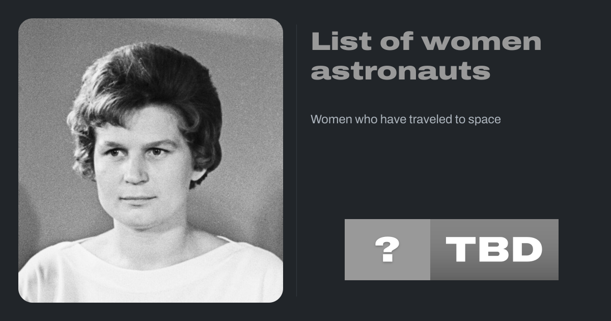 The following is a list of women who have traveled into space serving as a commander or crew member of a spacecraft, commonly referred to as astronauts or cosmonauts, sorted by date of first flight. This list includes Russian cosmonauts, who were the first women to cross the Karman Line into space. Valentina Tereshkova became the first woman to...