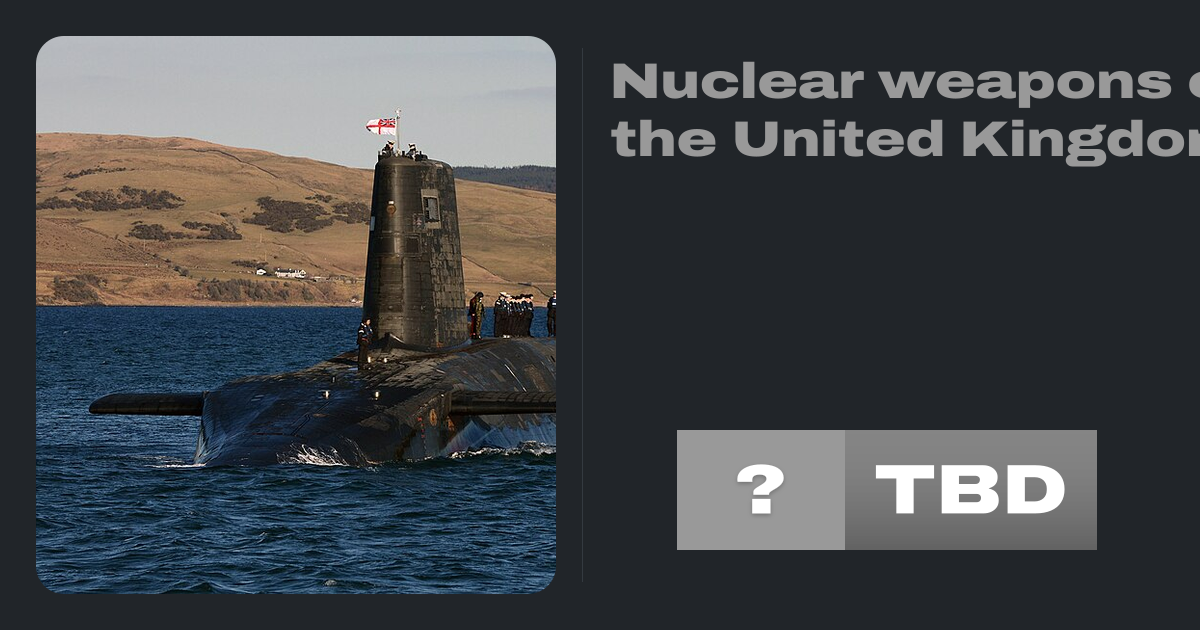 The United Kingdom became the third country (after the United States and the Soviet Union) to develop and, in 1952, test nuclear weapons. The UK is one of nine nuclear-armed states, and one of five recognized by the Treaty on the Non-Proliferation of Nuclear Weapons. As of 2025, the UK possesses a stockpile of approximately 225 warheads, with...