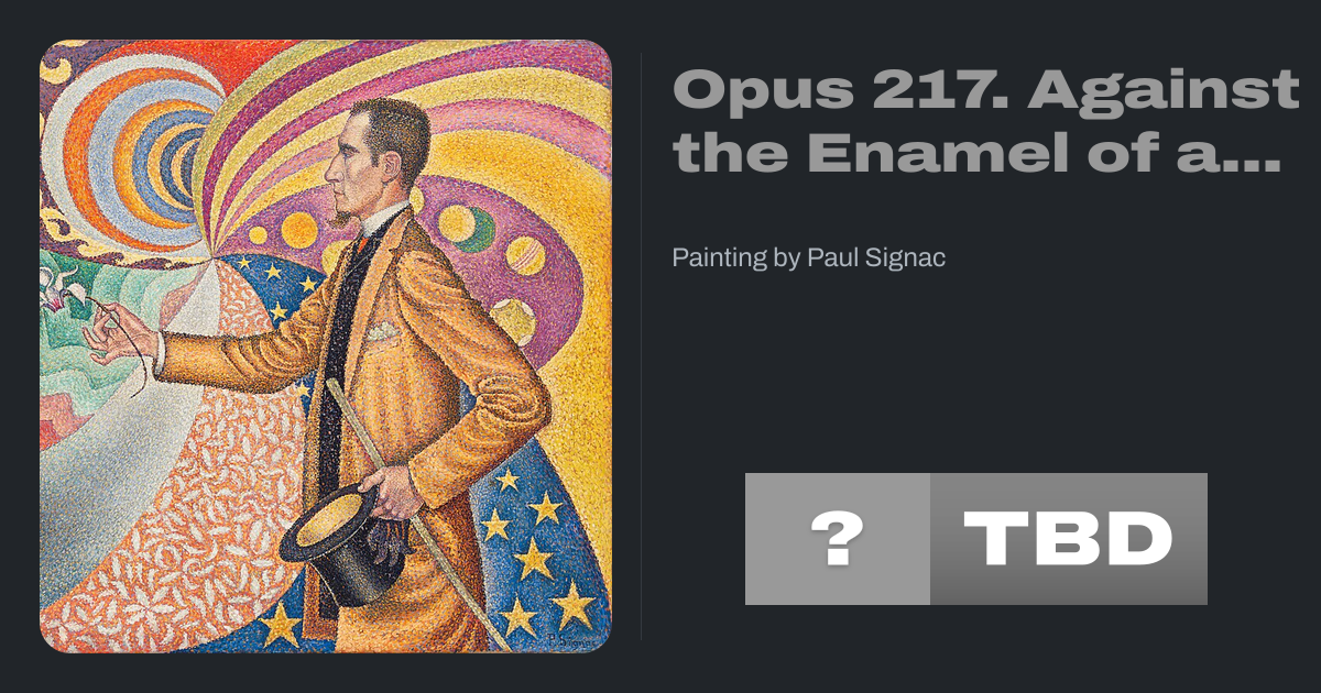 Opus 217. Against the Enamel of a Background Rhythmic with Beats and Angles, Tones, and Tints, Portrait of M. Félix Fénéon in 1890