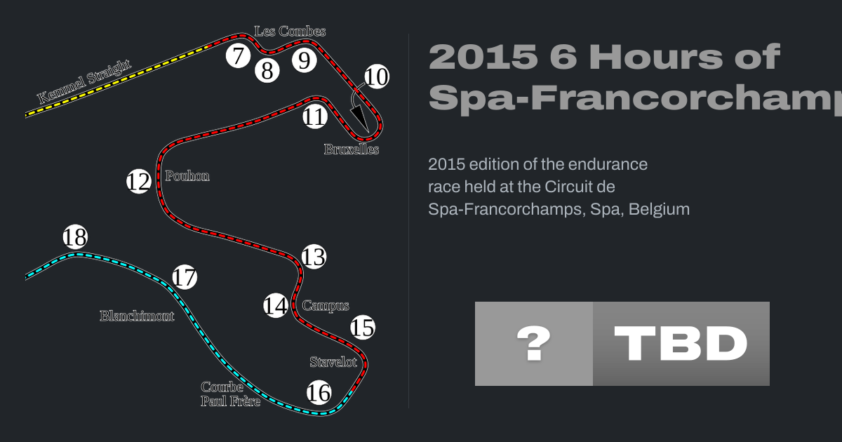 2015 edition of the endurance race held at the Circuit de Spa-Francorchamps, Spa, Belgium