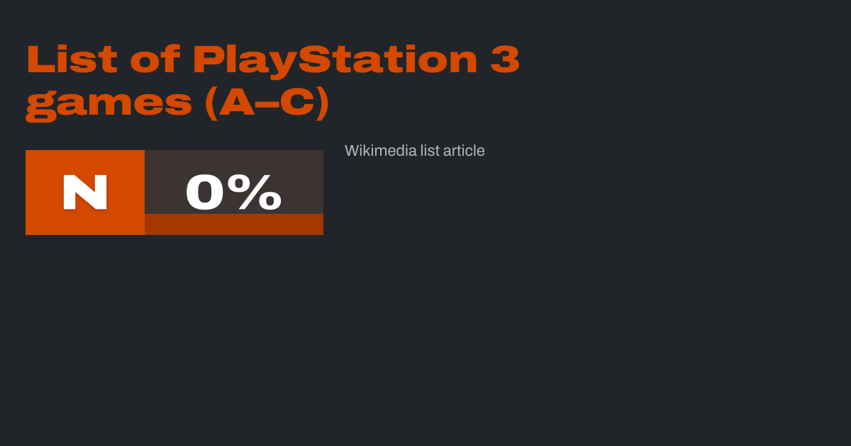 There are currently 2562 games in this table across all pages: A to C, D to I, J to P, and Q to Z. It does not include PlayStation minis, PS one Classics or PS2 Classics.