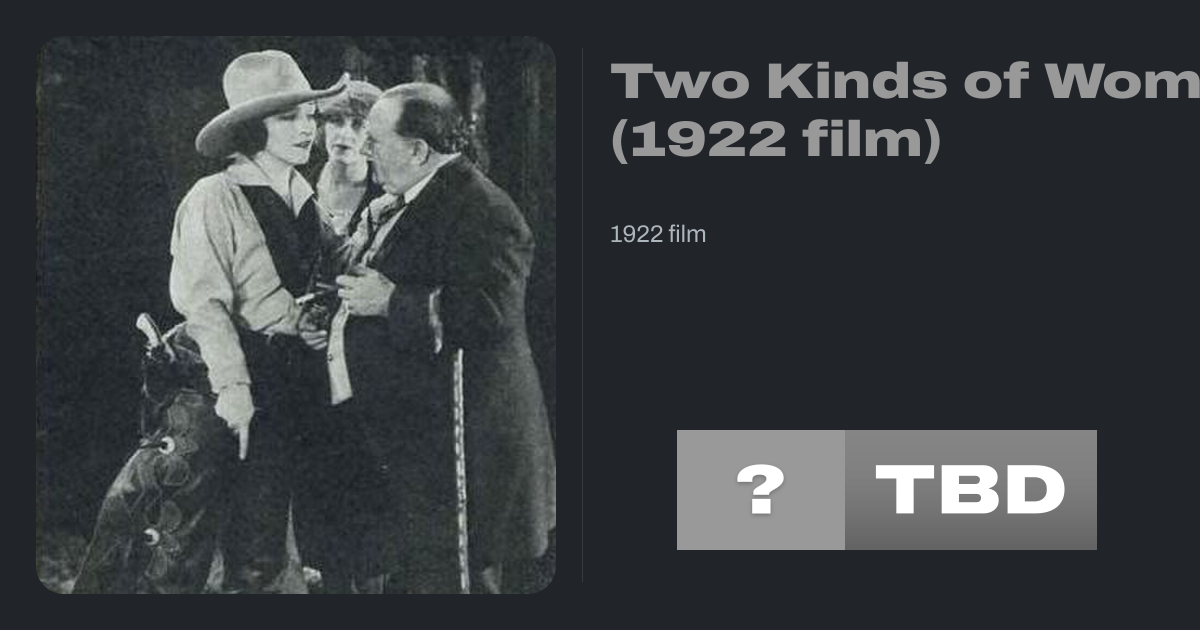 Two Kinds of Women is a lost 1922 American silent Western film directed by Colin Campbell and starring Pauline Frederick. It is based on the novel Judith of Blue Lake Ranch by Jackson Gregory. Robertson-Cole produced the film and distribution was through Film Booking Offices of America.