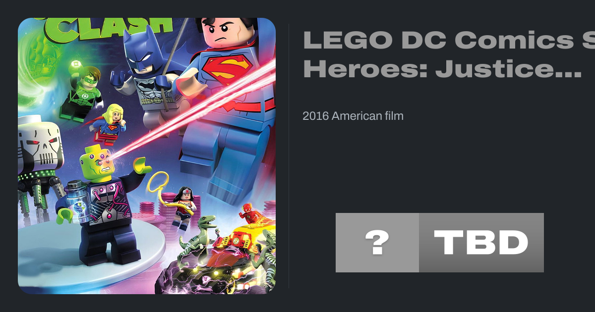 Lego DC Comics Super Heroes: Justice League โ Cosmic Clash is a 2016 American animated superhero comedy film based on the Lego and DC Comics brands, which was released on February 9, 2016, on Digital HD and March 1, 2016, on Blu-ray and DVD. It is the fifth Lego DC Comics film following Lego Batman: The Movie โ DC Super Heroes Unite, Lego DC...