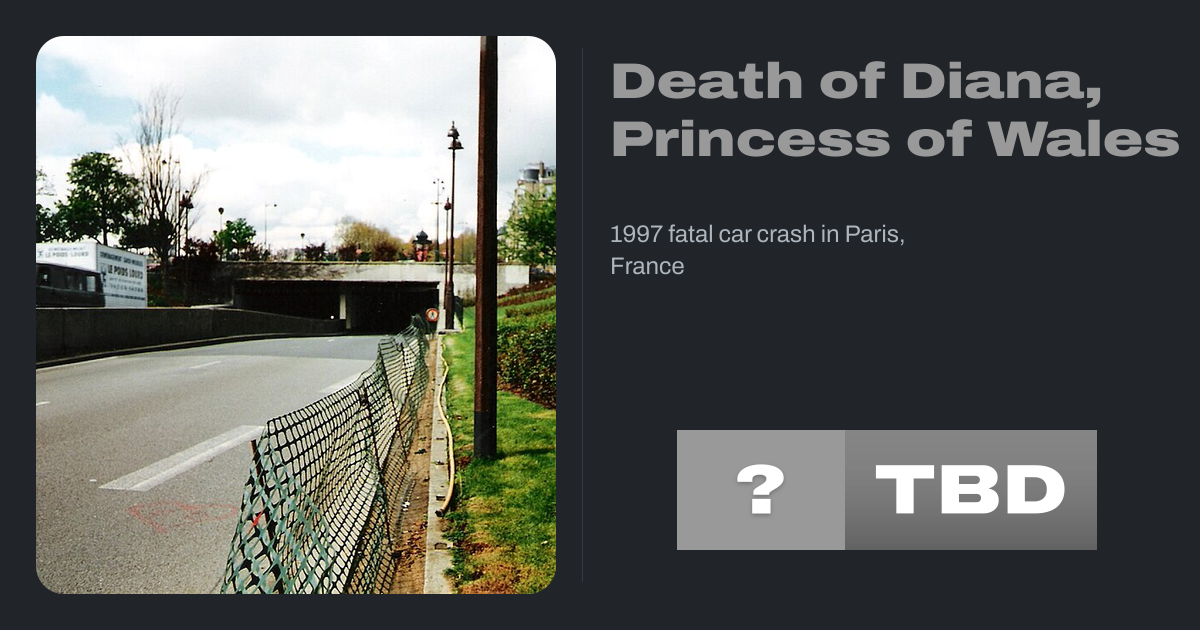 In the early hours of 31 August 1997, Diana, Princess of Wales died from injuries sustained in a car crash in the Pont de l'Alma tunnel in Paris, France. Dodi Fayed, Diana's partner, and the driver, Mercedes-Benz chauffeur Henri Paul, were both found dead inside the car. Diana's bodyguard, Trevor Rees-Jones, was the only survivor of the crash,...