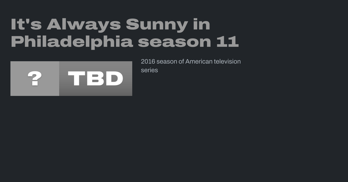 The eleventh season of the American television sitcom series It's Always Sunny in Philadelphia premiered on FXX on January 6, 2016. The season consists of 10 episodes and concluded on March 9, 2016.