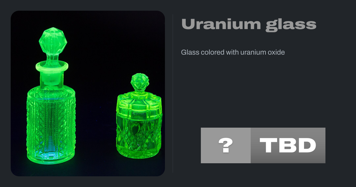 Uranium glass or vaseline glass or canary glass is glass which has had uranium, usually in oxide diuranate form, added to a glass mix before melting for colouration. The proportion usually varies from trace levels to about 2% uranium by weight, although some 20th-century pieces were made with up to 25% uranium.