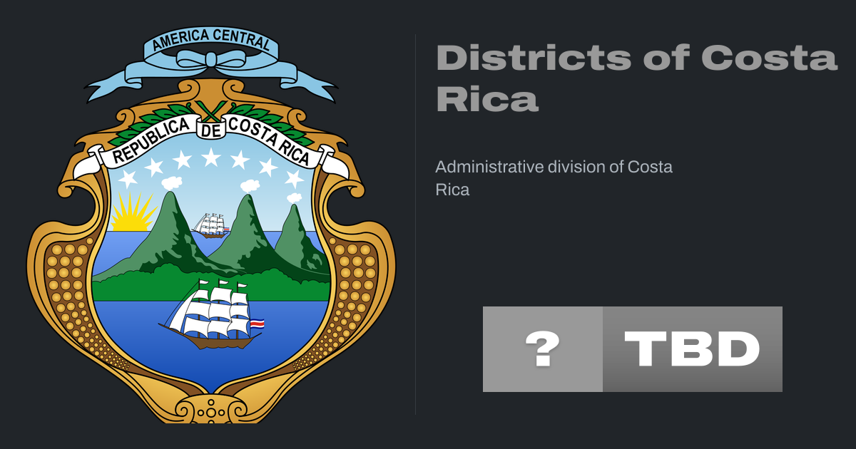 According to the Territorial Administrative Division, the cantons of Costa Rica are subdivided into 492 districts (distritos), each of which has a unique five-digit postal code.